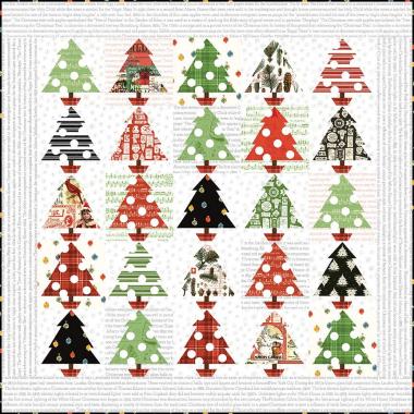 The Tannenbaum Patch Quilt Kit includes pattern and fabric for quilt top and binding. Backing is not included. Fabric featured is Classic Christmas by J. Wecker Frisch of Great Joy Studio. Pattern is also by Janet.