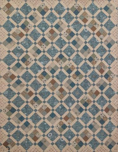 The quilt measures 69 1/2" x 89 1/2" and consists of 4-Patch blocks, Alternate blocks, with sashing and cornerstones. The pattern also has directions for a larger size.
