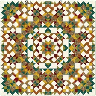The Morning Gatherings quilt by Kim Diehl brings together the basic elements of quilting, such as the square in a square or flying geese and creates a kaleidoscope feast for the eyes. Once completed, you will spend hours rediscovering all the patterns hidden in this quilt. Take a few steps back and the rectangle becomes a circle. This quilt makes a strong visual statement.